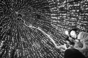 12月23日,新加坡乌节路的购物区圣诞灯饰美如画,购物者拉绳敲钟许愿。
