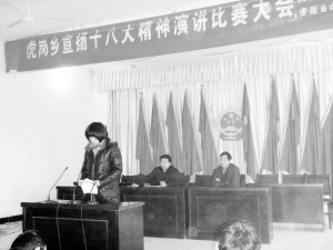 近日,由郸城县虎岗乡文化服务中心和中心校联合主办宣扬十八大精神演讲比赛在乡文化大院举行。