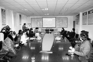 图为市评估小组在听取学校汇报材料。