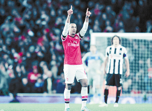 纽卡斯尔第69分钟三度追平,马尔沃克斯外脚背传中,登巴·巴抢在吉布斯之前小禁区右侧破门,3∶3。这是他本赛季第13粒联赛入球。第73分钟,吉布斯禁区左侧传中,波多尔斯基小禁区边缘漏过,沃尔科特10码处停球后转身抽射入网,阿森纳反超比分。