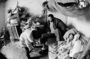 ▲放学后,谢丽丽帮着父亲下床锻炼。