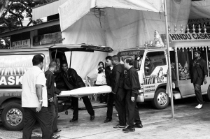 12月29日,裹着白布的受害者遗体被送至新加坡一家殡仪馆进行防腐,为运送回国做准备。