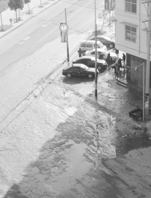 雨雪天气过后,洗车生意红火。然而,由于连日来我市气温在零摄氏度左右,路面有积水极易结冰。一些路边洗车店的洗车用水喷到路上后,很快结成冰,给过往行人和车辆造成安全隐患。图为周口市区一家洗车店门前路面结冰严重。