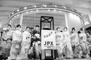 1月4日,日本交易所集团的企业标志在东京证券交易所举行的新年开市仪式上亮相。