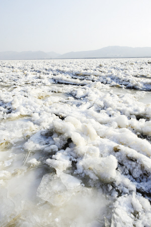 1月5日,在宁夏石嘴山黄河段,河面出现封冻。