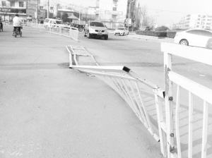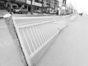 1月7日上午,记者在周口市区建设大道上看到,原本为了保护行人和车辆安全的交通护栏却出现不同程度的损坏,存在安全隐患,同时也影响了市容。