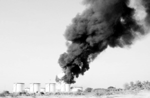 1月6日,印度古吉拉特邦苏拉特市附近哈兹拉印度石油公司的一处储油罐起火,冒起浓烟。