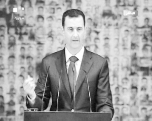 巴沙尔在讲话中指认反对派为恐怖主义者,是外国的“奴隶”,执行“基地”组织的策略。