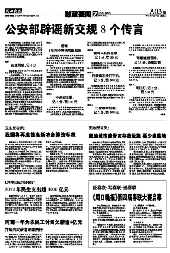 本报综合消息 公安部近日修订发布了《机动车驾驶证申领和使用规定》(简称123号令),调整了多项交通违章的扣分分值。对新交规,互联网上有8个说法流传广泛。对此,记者日前采访了公安部相关负责人。经过求证,这8个传言都存在误读。这位负责人强调,123号令根本不涉及罚金问题。