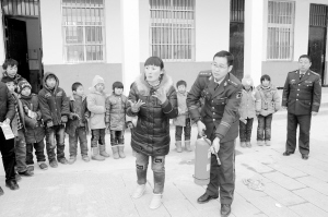 为让聋哑儿童这一特殊群体接受消防安全知识教育,提高自防自救能力,1月7日下午,淮阳县消防大队走进该县特殊教育学校,为124名聋哑孩子上了一堂生动而特殊的消防课。晚报记者 朱东一 通讯员 王栋 摄