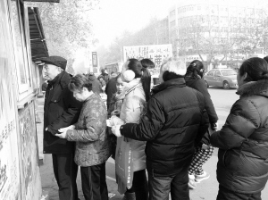 1月13日,市民在周口市区中州大道一公交调度亭前排队退票。