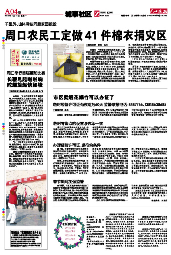 周口农民工定做41件棉衣捐灾区