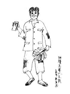 王朋平日勤于理发修面,洗澡净身,而在书场上那副衣着打扮,却十分怪诞,不是长短失体,便是破旧不堪,甚至给人以三分流荡之感。曾有人问他为什么,他回答十分离奇。他说,相声人临场卖艺,历来从四种类型中,结合个人条件,自选一种形象。一曰“怪”,长相尖嘴猴腮、瘦骨嶙峋,却偏偏穿一件紧身长衫,白袜黑鞋,折扇轻摇,给人一种分外怪离之感,天津马三立即属此招。二曰“帅”,生相端庄,身材匀称,配以西装革履或长袍马褂,临场一站,给人以衣冠考究、举止潇洒的印象,侯宝林等属于此类。三曰“败”,衣冠不整,破鞋旧袜,有意给人造成一种不拘行止、放浪不羁的怪诞之感。四曰“赖”,蓬头垢面,赤目焦齿,显胸露坏,坐立失态,七分游丐之相,以求引人生奇。此四种类型,艺人多依个人长相、演唱特色、所处场合,而各有取舍变幻。王朋说,他早年取“帅”字,为了让人看得起;到了壮年多在下层活动,要做到衣着上接近群众,所以又改取“败”字。