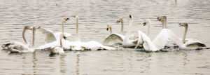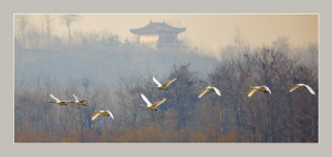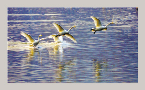 在三门峡库区广阔明澈、碧波荡漾的湖面上,成千上万只白天鹅自由自在地飞翔、飘游、嬉水、觅食,安详地休养生息。这些圣洁的仙鸟,千姿百态,构成了一幅幅动人的画面,成为三门峡一道亮丽的风景线,吸引四方游人争相观赏。