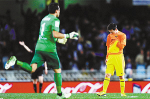 巴萨昨晨前30分钟比赛势头很猛,梅西和佩德罗不仅连下两城,还各有一次射门击中门框弹出。然而,巴萨的防守并非无懈可击。皇家社会半场前扳回一球。