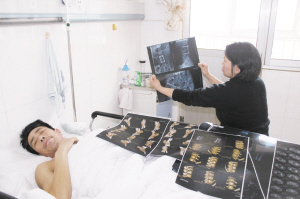 本报讯 “地下室黑灯瞎火的,我忘了楼梯在哪边,感觉脚下踩空,一下子摔下去,当时就疼昏了……”1月21日,记者在市中心医院见到了川汇区李埠口乡苑老行政村3组的苑立彬,他因在工地上严重摔伤,一个多月里在该院接受了3次接骨手术。如今,他不仅要承受手术的痛苦,还因为建设方迟迟不支付相关费用,使他的后期治疗面临资金困难。