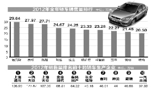 据上海通用发布的2012年销量数据,其旗下别克、雪佛兰、凯迪拉克三大品牌全年共销售139万余辆,实现同比增长13.1%,这已是上海通用连续第三年问鼎乘用车年度销量冠军宝座,并再次刷新了行业纪录。小型车市场,雪佛兰新赛欧以年销售近28万辆的成绩稳居第一。紧凑型中级车别克凯越与别克英朗、雪佛兰科鲁兹在细分市场形成合力,占有率稳居第一,实现同比增长12.1%。还有别克凯越、别克君越、君威等,均在各自的细分市场取得不俗的成绩。