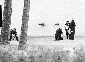 1月22日,在美国得克萨斯州休斯敦北部的孤星学院,调查人员在枪击案现场取证。