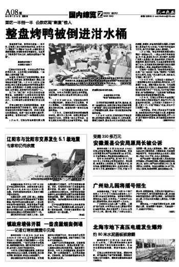 整盘烤鸭被倒进泔水桶