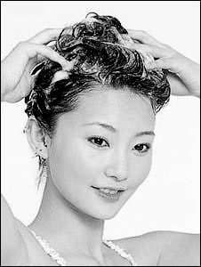 2.以温水将头发浸湿,水温最好在40℃左右,过烫会使头发变得松脆易断,过冷则去污、去油腻效果差。
