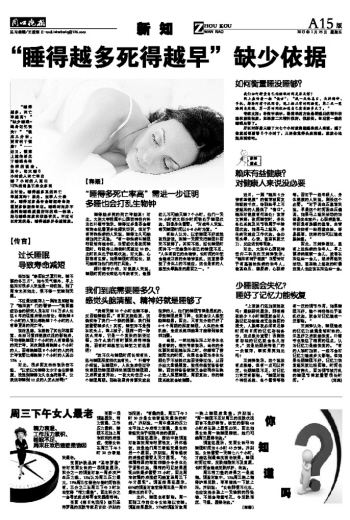“睡得越多死得越早”缺少依据