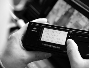 1月29日,在合肥骆岗机场停车场,技术人员在操作“北斗巴士”上的卫星定位汽车行驶记录仪。