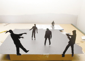 艺术家 David A· Reeves 的剪纸作品,用纸人摆出动作场景,再选合适的角度拍摄下来。据说,灵感来自于电影、游戏。