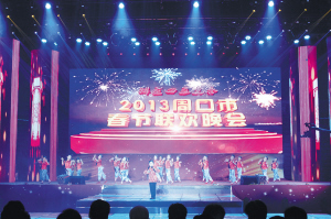 本报讯 1月31日晚,以“爱在家乡”为主题的周口市2013年春节联欢晚会在市体育馆激情上演,农民歌手旭日阳刚助阵演唱,市委书记徐光等市领导同各界群众一起观看了联欢晚会,共庆新春佳节的到来。