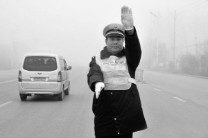 1月28日一大早,项城市内又是四面“霾”伏,能见度极低。项城交警在城区各主要路口、交通繁华地段指挥疏导交通(如下图),全力做好雾霾天气下道路交通安全管理工作。