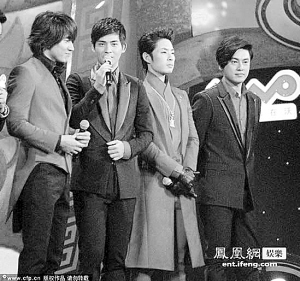 本报综合消息 1月30日下午,F4成员言承旭、周渝民、吴建豪、朱孝天终于全员聚齐,亮相江苏卫视蛇年春晚的彩排现场。网友“西城勿扰”在微博上第一时间曝出4人的彩排照,从照片上看,4人虽然都戴着墨镜,但帅气依旧,周渝民和言承旭更是搂着对方,兄弟情谊深厚令不少人感慨,还有不少网友调侃说:“两位的节操呢?”不过,4人此番暌违4年的亮相还是引发了一股怀旧潮,“致我们逝去的青春,那些年我们疯狂追过的F4。”(新娱)