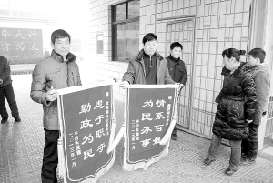 商水县教体局坚持信访工作“分级负责、归口办理,谁主管、谁负责,依法解决问题与思想疏导教育相结合”的原则,认真处理信访工作,及时化解各类矛盾,有效地促进了全县教育事业稳定健康发展。图为上访人员朱爱霞向该局赠送锦旗场景。(戚二中 摄).