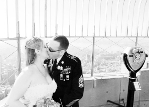 2月14日,凯利(左)和约翰在纽约帝国大厦的楼顶平台上相互亲吻。
