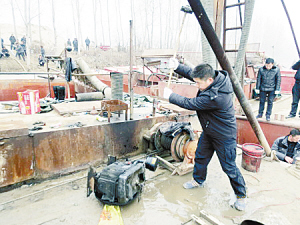 2月14日,农历正月初五,俗称“破五”节。当天,我市一些市民抱着侥幸心理,在西华县、商水县、川汇区、淮阳县、项城市境内的沙颍河河道内非法采砂。接到群众举报后,当日,我市市、县两级水政监察部门迅速出击,共出动执法人员200余人,销毁非法采砂机具50余套,暂扣非法采砂船只23条。图为水政监察执法人员怒砸采砂船。