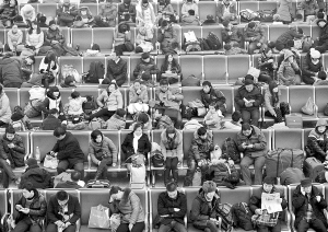 2月17日,旅客在石家庄火车站候车大厅候车。