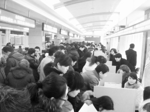 当日9时30分,招聘会正式开始,前来应聘的市民陆续来到现场,不一会儿便把招聘台围得水泄不通(如图),他们中不仅有下岗职工、返乡农民工,还有大学生。记者注意到,前来招聘的企业以周口本地企业为主,还有一些企业来自上海、江苏等地。企业类型涉及汽车销售、保险、医药、家政服务、电缆等行业,提供的岗位包括营销、企业管理、技工、普工等,提供的待遇多在2000元左右,也有一些企业开出了每月5000元至6000元的高薪。