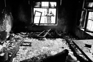 2月20日,一名男子在也门首都萨那其房屋外向内查看损毁情况。