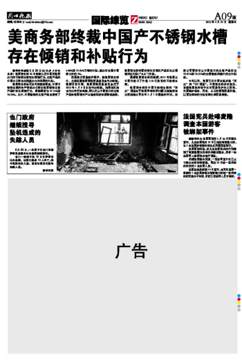 美商务部终裁中国产不锈钢水槽