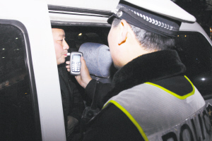 春节假期里,记者走访时,市区的王先生说:“过节跟亲戚朋友在一起吃饭,难免喝点酒。但大家都知道喝酒不能开车,所以自己喝了酒,就会让同行的不喝酒的人开车。”据了解,多数人和王先生的态度一样,但遗憾的是,虽然酒后不能开车已经深入人心,却仍有一些司机明知故犯。2月21日,是春节过后第一次市区统一查酒驾。当天20时许,市区各派出所交巡警大队的民警到辖区一些重点路口进行检查(如图)。在汉阳路与交通大道交叉口,荷花派出所交巡警查到一位酒驾司机。该司机称,他和几个朋友在汉阳路吃饭,刚从饭店开车出来就被查了。“我就喝了一点,感觉不会出什么事,所以就开车了”。通过酒精测试,该司机属于酒后驾驶。