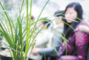 2月26日,游客们在品赏名品兰花。当日,第14届南京海峡两岸兰花展在南京市举行,来自江浙皖云贵川以及台湾地区的400余盆名品珍品兰花参展,吸引了众多兰花爱好者及市民参观交流。新华社记者 杨磊 摄