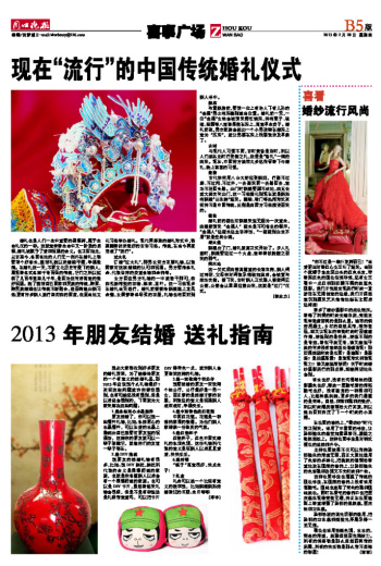 想必大家都收到好多朋友的婚礼请柬,为了能够给朋友的一个有意义的结婚礼品,那2013年应该送什么礼物最好?其实这些问题或许你曾经遇到,也有可能还没有遇到,但是以后总会遇到的,下面就为大家来解决这些问题: