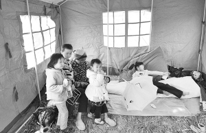 3月4日,一些受灾群众在洱源县炼铁乡前甸村委会新建村民小组的受灾群众集中安置点的帐篷内休息。