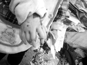 尽管如此,好心的王兰英对孩子依然不离不弃。同时,王兰英还刻意给孩子取名龙龙,希望孩子像神龙一样健康成长。为了维持生活,王兰英背着孩子,每天早出晚归,到街上捡破烂。
