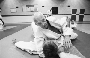 当地时间2013年2月21日,荷兰90岁的Wim van Delden在练习柔术。Van Delden是荷兰年纪最大的柔术练习者之一,也是该年龄段唯一还在练习的人。作为一名柔术黑带二段高手,他的胳膊腿仍像年轻人一样强健有力。一周两次,他都会来到杜斯伯格体育娱乐协会跟比他小几十岁的运动员们切磋武艺。