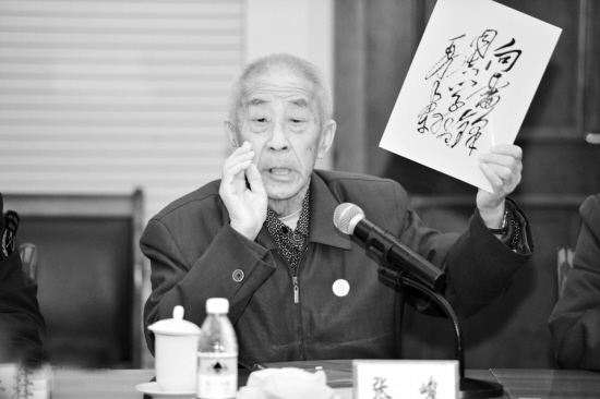 3月5日 ,张峻(左)在座谈会上发言。这是他生前留下的最后影像 新华社 发