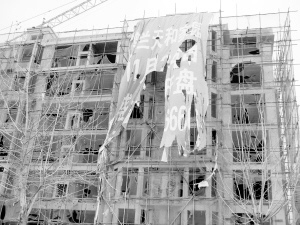昨日清晨,记者在市区街头看到,大风让停在外面的汽车蒙了一层土,让不少户外广告牌变了形……