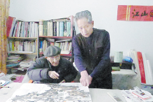 日前,中国美协会员、74岁的西华籍花鸟画家理勤功与中国美协会员、国家一级画师、93岁的安徽亳州籍山水画家颜语共同创作了一幅《梅竹图》,致贺2013年全国两会,表达老一辈文艺工作者对祖国的热爱,对社会主义、改革开放的拥护。晚报记者 李伟 摄