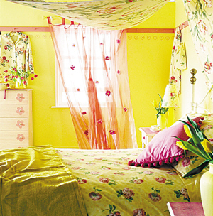 将家里的窗帘、床品、沙发、桌布等布艺换一下,就能轻松营造出春天的感觉