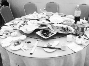 “不过最近报纸、电视都在提倡节约粮食,所以这次少点了两个菜,酒也只带了两斤,算是响应这个号召吧。”陈先生告诉记者,虽然少点了两个菜,但他的同学仍吃得很满意。不过,宴席结束后,餐桌上还是剩下了四分之一左右的菜。