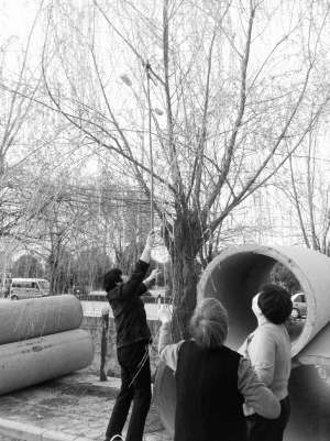 本报讯 春天到,柳树发出新芽,一些市民却打起新长出的柳穗的主意。昨日,记者在市区交通大道上看到,一棵棵柳树长满新绿,几位老人正围在一棵柳树边采摘柳穗。其中一位老人手拿棍子踮起脚尖伸手去抓高处的柳枝,其他人则在下面用手捋柳穗(如图),就连新长出的嫩芽也没有放过。一位老人面前的一个白色小桶内,装了不少新采摘的柳穗。“我们准备把柳穗摘回去蒸着吃。”见有人询问,其中一位老人说,柳穗和榆钱一样都能蒸着吃。