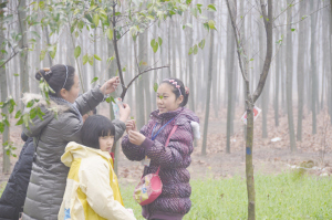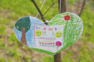小记者为小树挂上祝福卡 晚报记者张劲松/摄 快乐行动